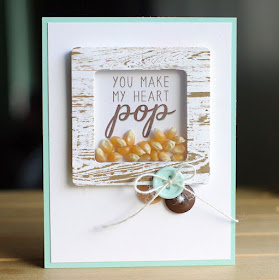 " I love all of the little popcorn "clouds" that Michele created - each so perfectly colored to look just like popcorn. The sentiment across the kernels and the little icons are fun touches!"