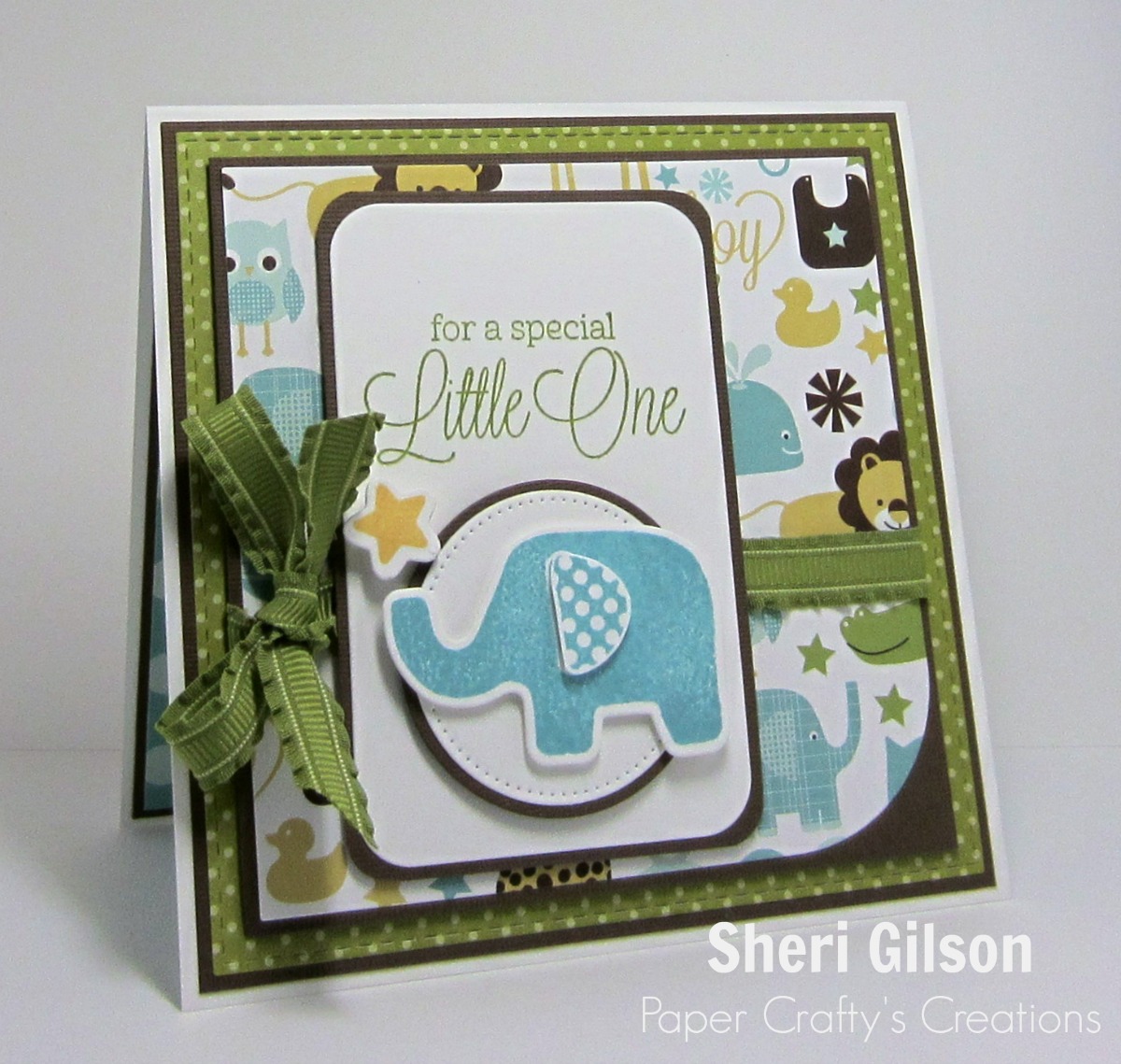 " I love Cori's paper choice and the great textured stamps with the birthday flair and pinking circle. all great boy details."