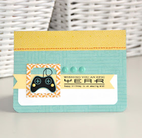 " I love Cori's paper choice and the great textured stamps with the birthday flair and pinking circle. all great boy details."