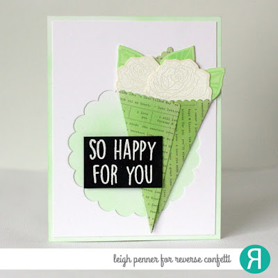 " I love the great use of "white space" on Jacquie's card and how she positioned the rainbow balloons inspired by the sketch. The black die-cut word is the perfect anchor. Such a happy and festive birthday card!"